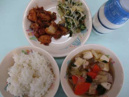 ご飯・牛乳・ゆばのすまし汁・白身魚おかか和え・即席漬け
