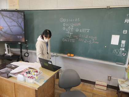 学級閉鎖になったクラスは、リモートで授業を行います。今日は、リモートの算数の授業を行っていました。先生もみんなに呼びかけながら楽しく授業をしています。子どもたちもリモートでしたが、積極的に授業に参加できていました。