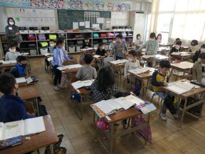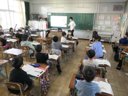 今日の国語の時間は、「もののなまえ」を学習していました。いろいろなものには名前があります。その名前を考えて発表していました。ものの名前を色々集めて、おみせやさんごっこもしたいですね。