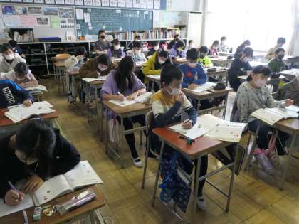 今日の算数の時間は、問題を分かりやすくするために表に書いて考えていました。表に書くと、変わり方がよくわかります。表に書いて整理しながら文章問題の解答を求めていました。
