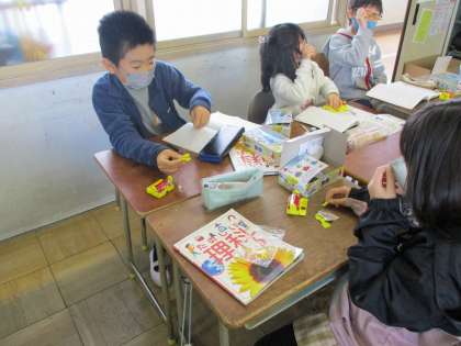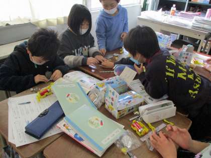 今日は理科の「電気の通り道」の授業で、電気を通すもの通さないものを調べました。鉄くぎやガラスのコップ、輪ゴムなど豆電球に明かりがつくのかどうかをグループで調べていました。自分の予想と違う結果がでると「お〜!」という声もあがっていました!