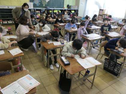 今日は、お手紙のあて名を書く練習をしていました。郵便局からいただいたテキストを使って、あて名書きの練習をしていました。あて名におじいさんやおばあさんの名前を書いている児童もいました。心のこもったお手紙はもらった人はとてもうれしいですね。