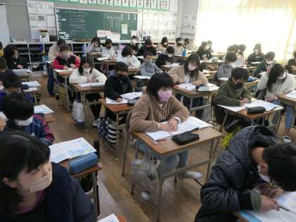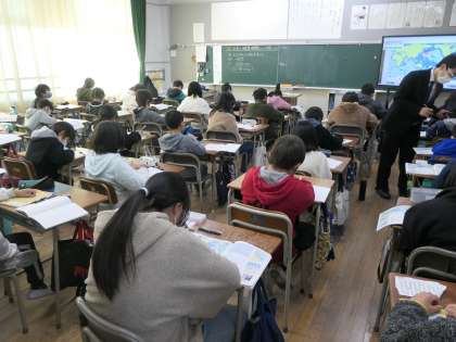今日は、日本の水産魚がかかえている問題を考えていました。教科書にのっている様々な資料から読み取っていました。日本にとって、後継者不足は大きな問題の一つですね。