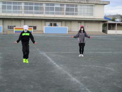 体育の時間に縄跳びをしました。昨年より跳べるようになりたいね!
