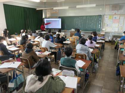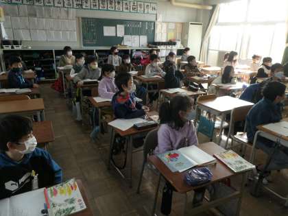 今日は、心が動かされたことを詩で表現をする学習をしていました。先生が、自分の子を題材にして見本の詩を作ってきてくれました。子どもたちは、楽しそうに聞き入っていました。