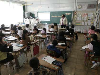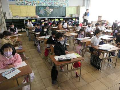 今日は、「ものとひとのかず」でのこりの数をもとめる学習を進めてました。「券が14枚、子どもが9人います。一人1枚ずつ渡すと何枚のこりますか」の問題に取り組んでいました。みんな引き算で答えを求めていました。