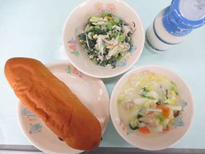 レーズンパン・牛乳・しょうがミルクスープ・ポパイサラダ