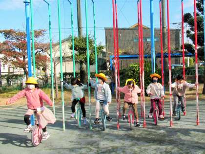 縄跳びや一輪車の練習に夢中になっています。日に日に上達する子どもたちの可能性は無限です。
