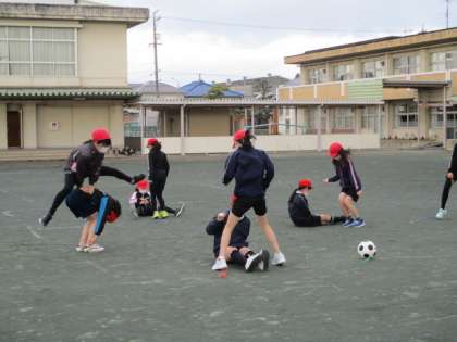 今日は次回のパスのテストに向けて練習をしました。練習前にはしっかりと準備運動もしています。寒い中、たくさん動いて体も温かくなりました。