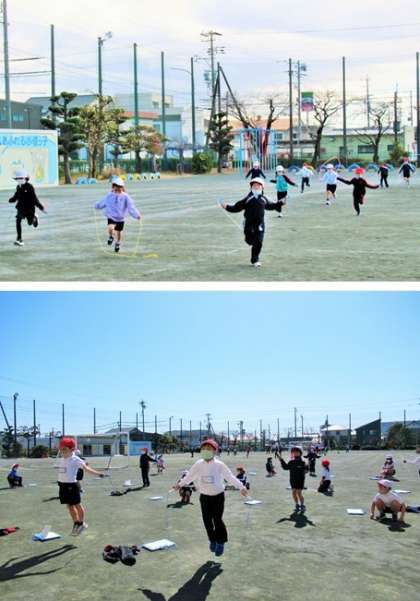 道徳の授業で、あきらめずに頑張ることの素晴らしさについて考えた後、リズム縄跳び検定に臨みました。今までの練習の成果を発揮しようと頑張りました。