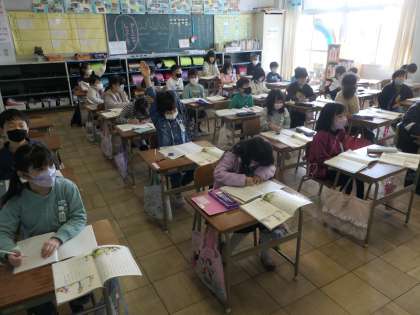 今日の国語の時間は、「ずっと、ずっと、大好きだよ」のお話の中で、エルフが死んでしまったときの登場人物の気持ちを読み取っていました。にいさん、いもうと、ぼくの気持ちをそれぞれ読み取っていました。