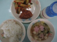 今日は、シャキシャキ豚丼の具をご飯にのせて食べるの献立です。