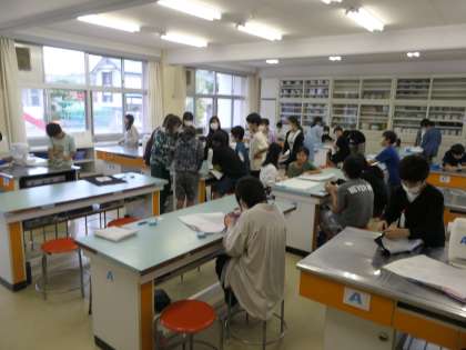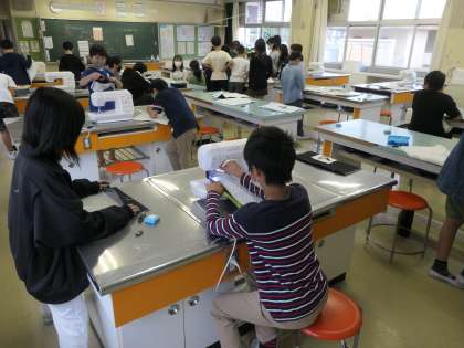 今日の家庭科の時間は、ナップサックの制作をしました。今日は、口あき止まりの部分を縫っていました。しっかり縫っておかないといけない部分なので、ミシンを使って作業を進めていました。