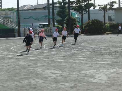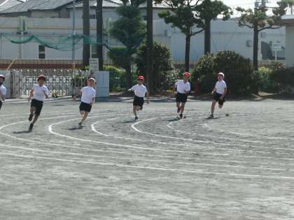 今日は、スポーツフェスティバルの短距離走の練習をしていました。本番前ですが、コースを確認しながら真剣に走っていました。本番が楽しみです。