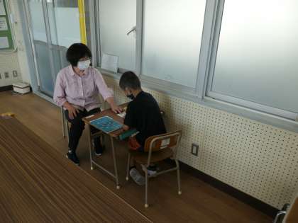 今日は、担任の先生と一緒に計算練習を行いました。一つ一つ答えを確認しながら計算練習に取り組んでいました。