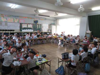 今日は、お家の方にダンスや玉入れ、短距離走を見てもらうのを朝から楽しみにしていた1年生ですが、一番嬉しそうにしていたのがお弁当の時間でした。