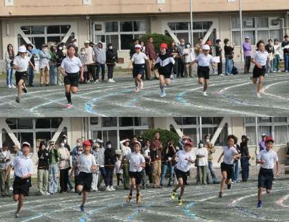 今日のスポーツフェスティバルの第一部で、3年生は全校に先駆けて短距離走に臨みました。1・2年生の時は40mでしたが、今回からは中学年で80mに距離が延び、カーブもあるコースを走りぬきました。