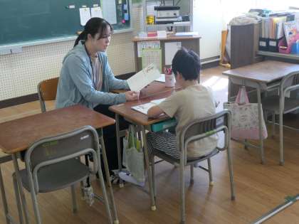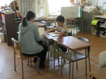 今日は、担任の先生と一緒にごんぎつねの読み取りをしていました。先生と一緒に読んでから、そのお話の内容を読み取っていました。