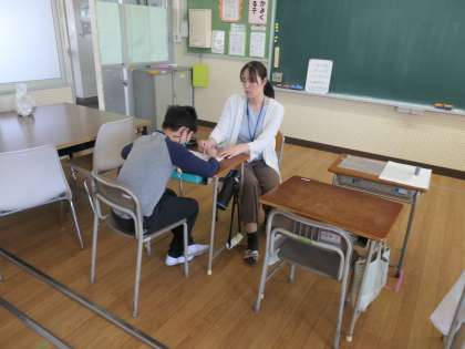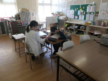 今日は、担任の先生と一緒に版画の下絵を描きました。6年生の思い出の絵を描いていました。体育のバレーボールが楽しいので、バレーボールをしている絵を描いていました。