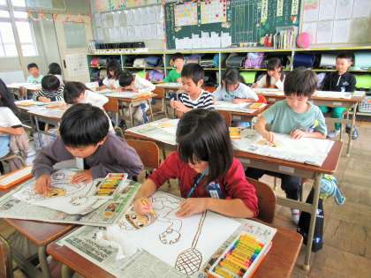 今日の図工の授業は、楽しかった玉入れを思い出して絵を描きました。