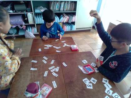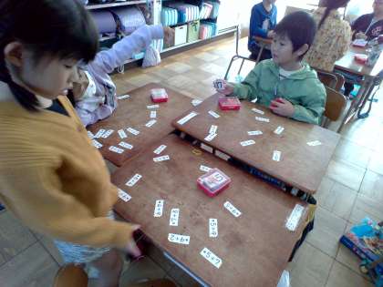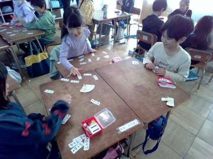 今日は計算カードをかるたのように見立てて、カード取りをしました。