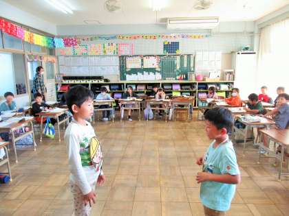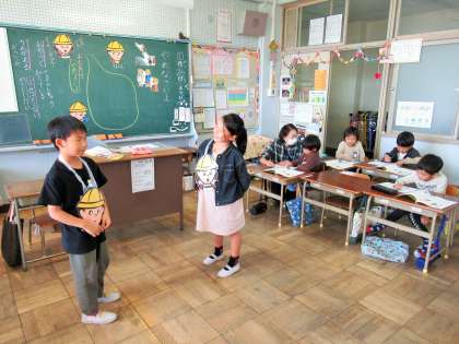 道徳の授業では、登場人物の心情を考えたり、自分だったらどう言うか考えたりするために、役割演技を行います。今日は、よくないことをした子に、どんなふうに声をかけたらよいかを考えました。