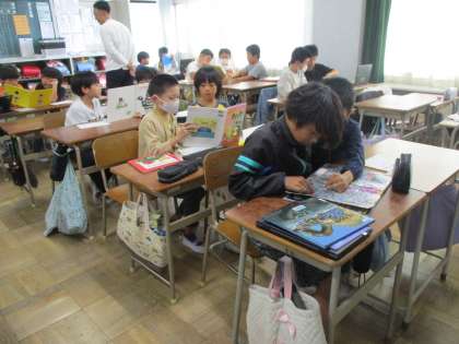 4年生のお兄さん・お姉さんと交流をしました。スポーツフェスティバルの感想の交流、読み聞かせ、レクリエーションなど楽しく交流しました。27日の地域クリーン作戦でも、仲良く交流しながら取り組んでくれることと思います。
