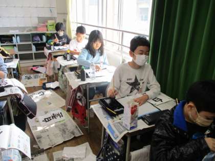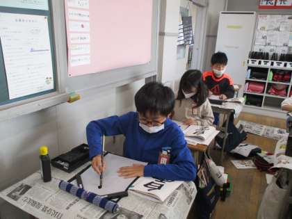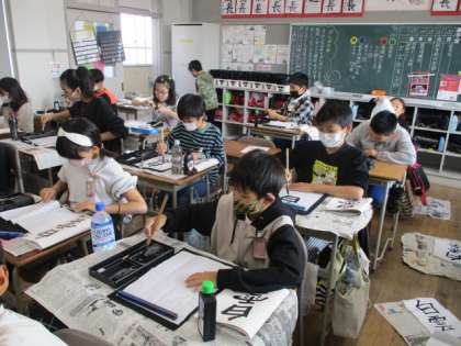 習字の時間です。文字と文字の大きさのバランスに気を付けて練習しました。