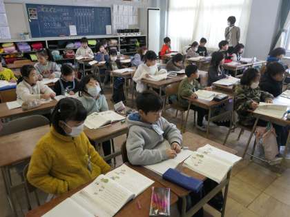 今日の国語の時間は、教科書にある説明文の「おにごっこ」に書かれている内容を大まかにとらえてまとめていました。段落分けをして、そこに書かれていることをキーワードを考えながらまとめていました。