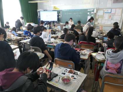今日の図工の時間は、「未来のわたし」の作品制作をしました。人物に色をつけたり、背景を制作したりしていました。あと少しで完成です。素敵な作品が出来上がってきていました。