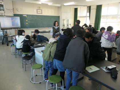今日の理科の時間は、理科室で実験を行いました。水溶液に溶けているミョウバンや食塩を取り出す実験をしていました。結果を予想してから実験で確認をしていました。