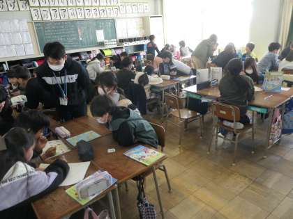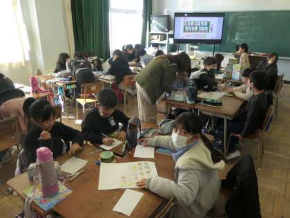 今日の英語学習の時間は、英語を使ったクイズをグループで相談しながら考えていました。「What's this?」で始まるクイズを作っていました。hintやAnswerも合わせて考えていました。