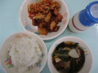 ご飯・牛乳・イワシの梅煮・きんぴられんこん・たけのこのすまし汁・青梅ゼリー