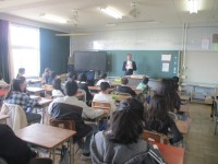 6年生の学活の様子です。教室でしっかり話を聞いたり、プリントを受け取ったりして、...