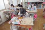 図工の様子です。糸のこぎりで切ったパズルのピースに色をつけています。一つ一つ丁寧に着色しました。完成に向けて集中して取り組んでいます。