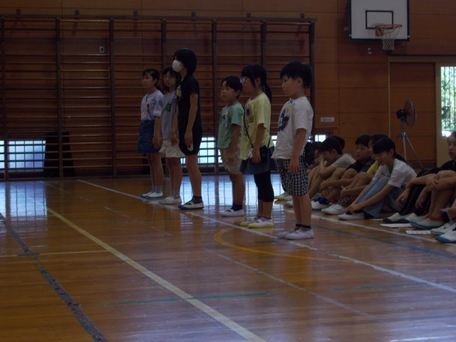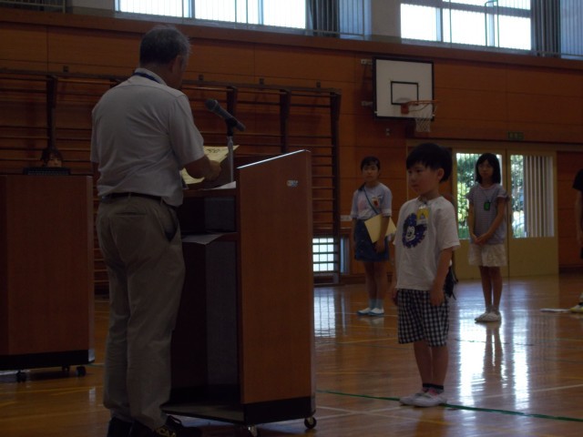 今日の朝礼で、一宮市子ども作品展で優秀賞に選ばれた児童の表彰がありました。少し緊張した面持ちでしたが賞状を校長先生から受け取りました。
