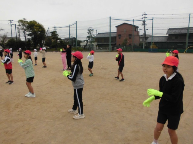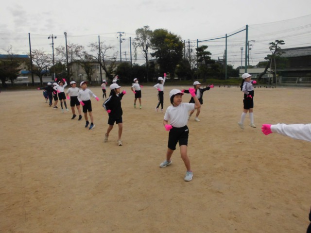 今日は運動会のダンスの練習をしました。本番と同じように、軍手をつけて踊りました。軍手をつけて踊ると、タイミングをずらして踊るところなどが、よりきれいに見えますね。本番まであと一週間、練習がんばりましょう!!