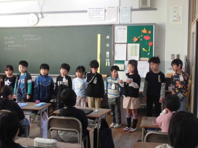 1年生が、先日行ったおもちゃまつりのお礼に来てくれました。