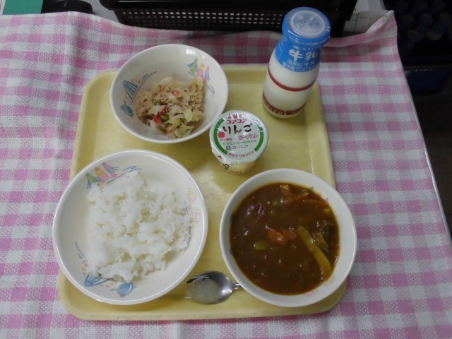 牛乳・ご飯・ビーフカレー・大根サラダ・りんごヨーグルト