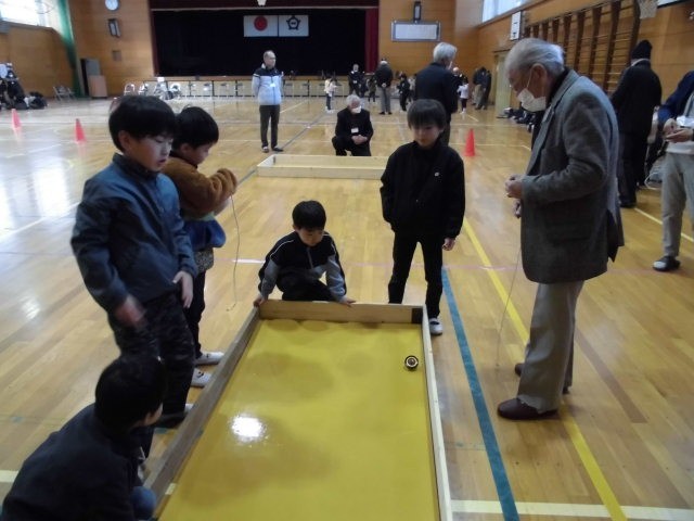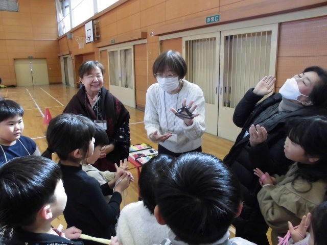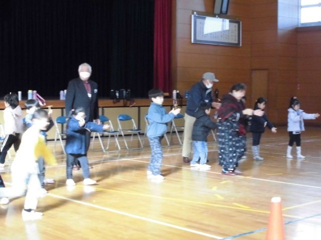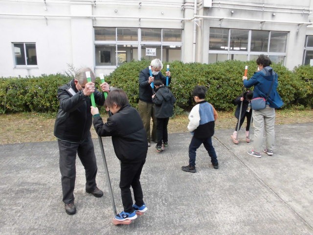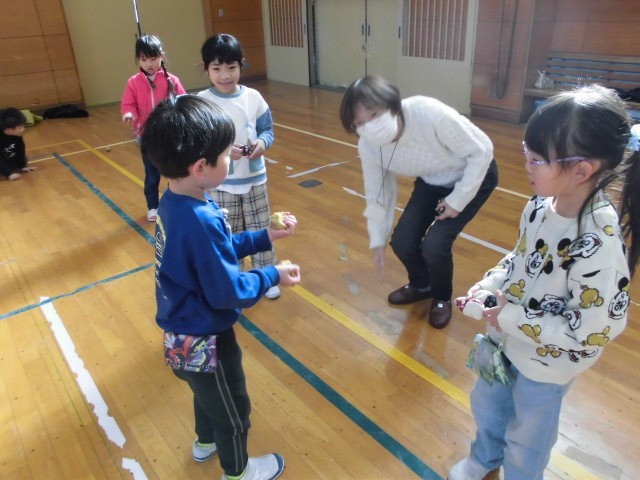 地域の老人会の皆さんを講師にお招きして、昔遊び体験会を行いました。今日は、竹馬、竹とんぼ、けん玉、こま回し、お手玉、あやとりの6つの遊びを教えていただきました。最初は、慣れない感じの子が多かったものの時間と共にコツをつかみ少しずつ上達する姿が見られました。次回は、1か月後です。練習の成果を見ていただく予定です。地域の講師の皆さん、本日は大変お世話になりました。ありがとうございました。