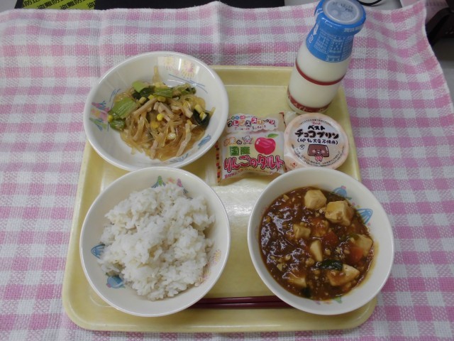 牛乳・麦ごはん・マーボードウフ・バンサンスー・セレクトデザート