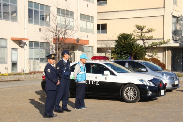 一宮警察署と青パトの方に来ていただき、交通安全や防犯についてお話していただきました。