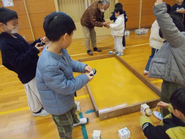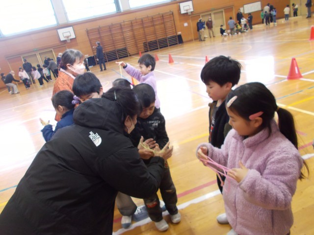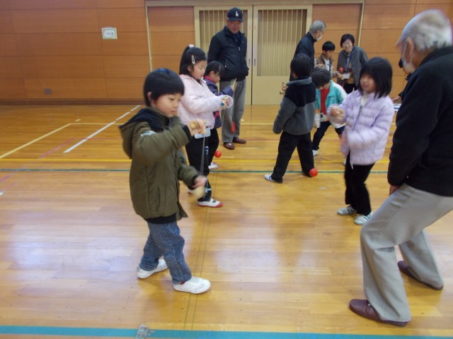 二学期に続いて、二回目の昔遊びの会があり、地域の方に教えていただきました。今日は、けん玉、お手玉、あやとり、こまの四つの遊びから2つを選びました。一回目の昔遊びの会の後に、子どもたちは練習を積んできたので、できるようになったことも増えてほめてもうらこともありました。とても一生懸命に昔遊びの練習に取り組んでいました。
