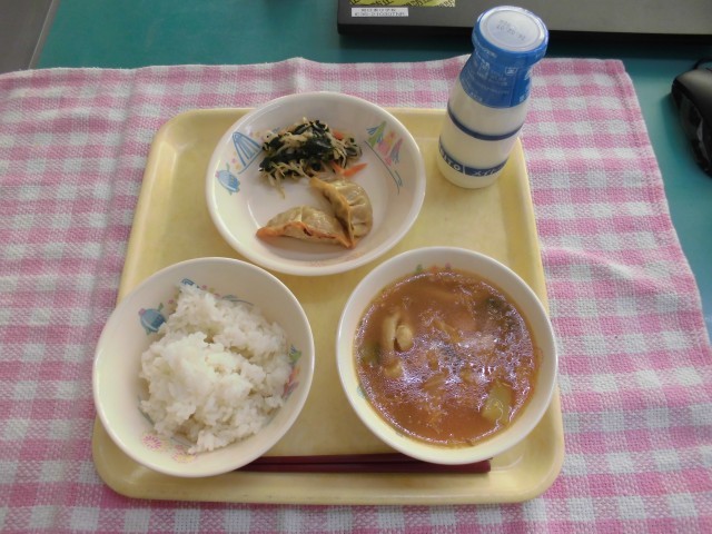 牛乳・ご飯・焼き餃子・三色ナムル・ピリ辛トックスープ