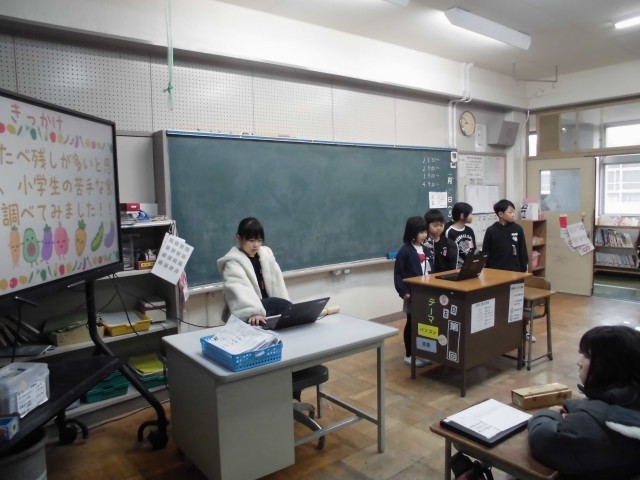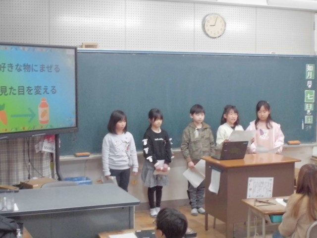 今日は学習発表会でした。グループのみんなと協力して、しっかりと発表することができました。食育に学んだことを、これからの生活にも生かしていきたいですね。今日はお忙しい中お越しいただき、ありがとうございました。