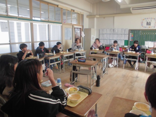 昨日と今日は、教頭先生をそれぞれの教室にお招きし、一緒に給食を食べました。