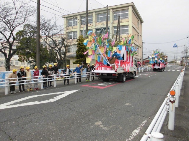 3月1日(日)に開催される国府宮はだか祭にむけて朝日地区で奉納パレードが行われました。本校では、社会科の地域学習として4年生がパレードを見学しました。