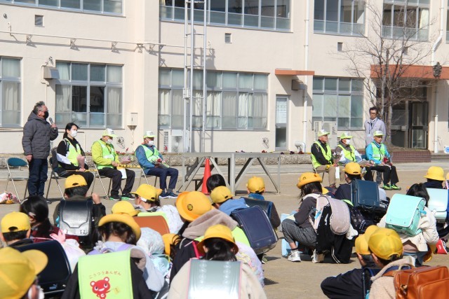 一斉下校時に日頃大変お世話になっている見守り隊のみなさんに感謝する会が行われました。