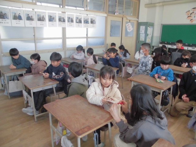 1年間なかよしペア活動をしてきた1年生に、お礼のプレゼントをしました。