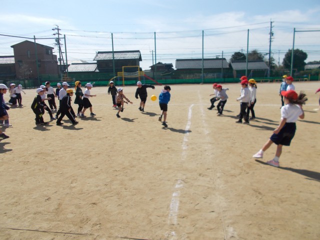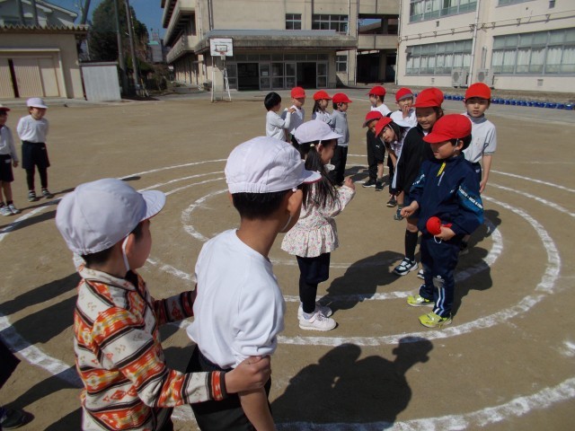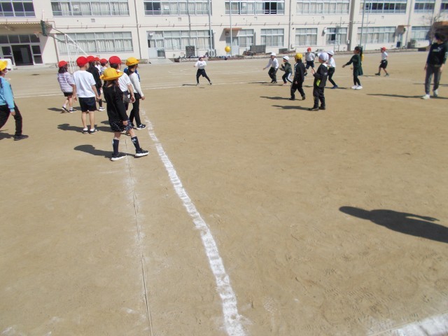 1、2組合同で体育の授業です。ぐるぐるじゃけんをしたり、ドッジボールをしたりしてたくさん汗をかきました。一年生最後の体育を元気いっぱい取り組みました。